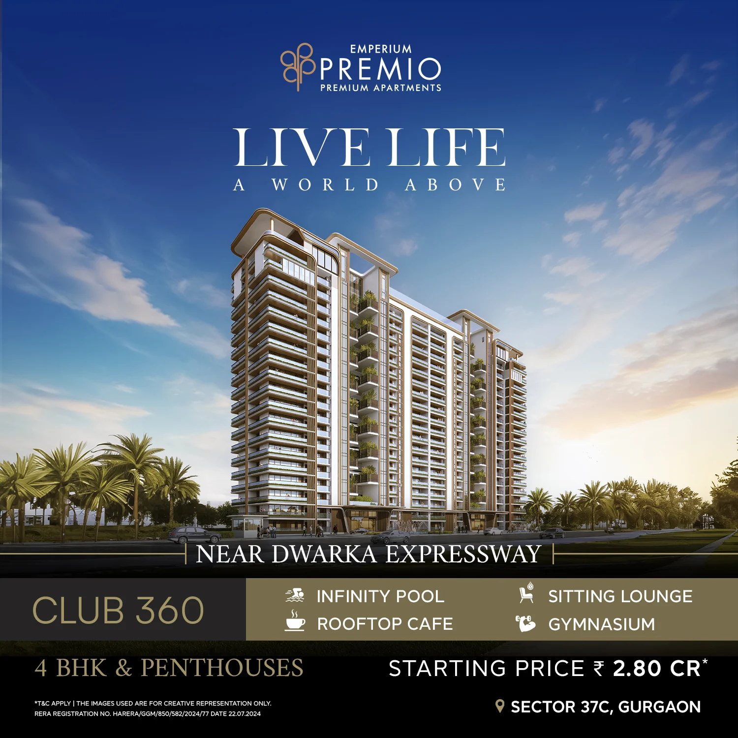 Experience the pinnacle of ultra-premium living at Emperium Premio, a lifestyle of unparalleled sophistication and opulence, tailored for the discerning few. Gurugram is about to witness a new level of premium living, where every detail is meticulously crafted to provide an exceptional living experience. Emperium Premio, situated in Sector 37 C, Gurugram, is a haven for those who appreciate the finer things in life. Indulge in an exclusive terrace pool, unwind in the sky lounge, or entertain in style with a terrace under sky dining and banquet hall.